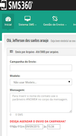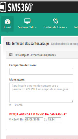 Disponibilizamos um Painel do Usuário contendo o Seu Logotipo e nenhuma informação sobre à SMS360.